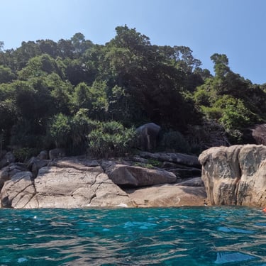 Further offshore, the Similan Islands are a true marine sanctuary. Renowned for their crystal-clear waters, giant granite boulders, and steep drop-offs, they are home to exceptional biodiversity: manta rays, sea turtles, leopard sharks, schools of tropical fish, and thriving coral reefs. Visibility is often outstanding, making the Similans a must-visit destination for divers.